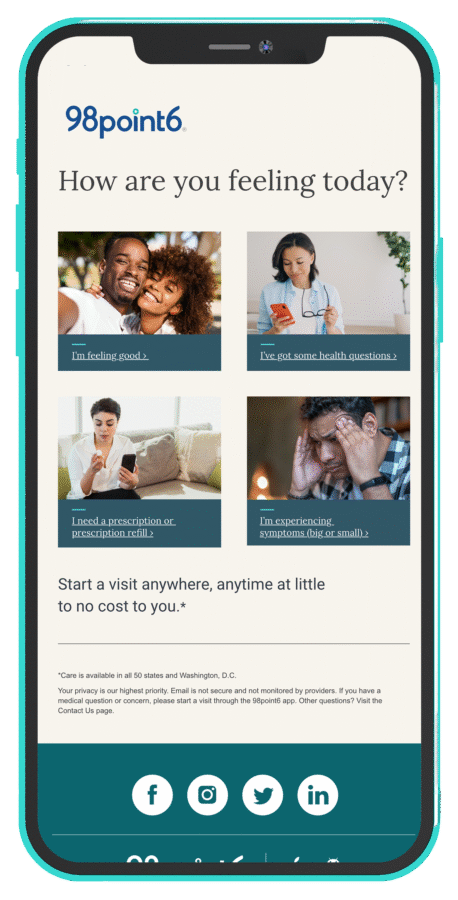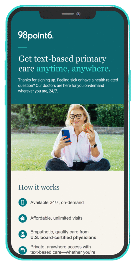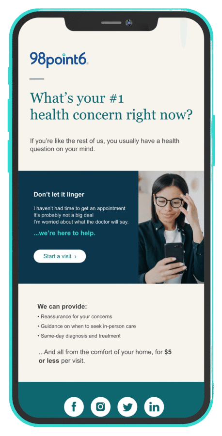 As 98point6 evolved from a hybrid care model into a full-scale SaaS offering, the need for targeted, lifecycle-based marketing became urgent. With multiple customer touchpoints and audience segments—ranging from enterprise healthcare partners to B2B2C subscribers—email had to do more than inform. It had to convert, guide, and reinforce trust