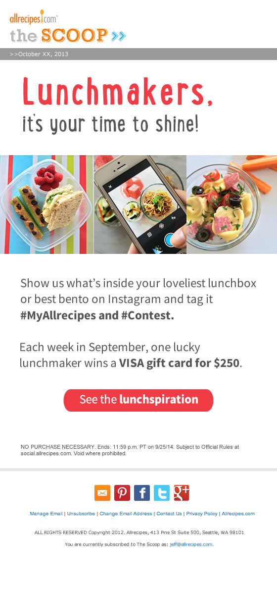 Email Announcement CLIENT Allrecipes.com CATEGORY Branding, Graphic Design ROLE Graphic Design TOOL USED Photoshop Illustrator Previous Allrecipes Scoop Next Education Email Advertisement