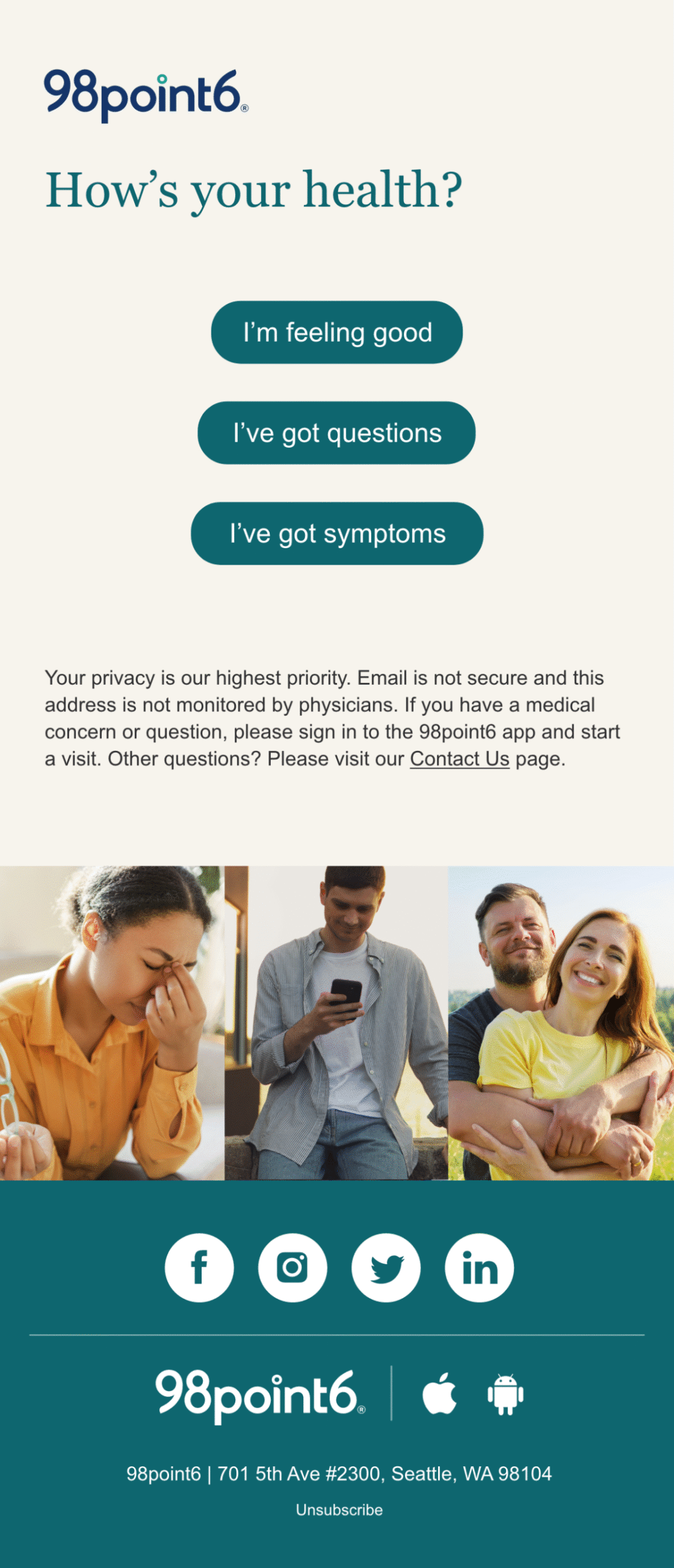 As 98point6 evolved from a hybrid care model into a full-scale SaaS offering, the need for targeted, lifecycle-based marketing became urgent. With multiple customer touchpoints and audience segments—ranging from enterprise healthcare partners to B2B2C subscribers—email had to do more than inform. It had to convert, guide, and reinforce trust